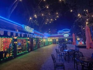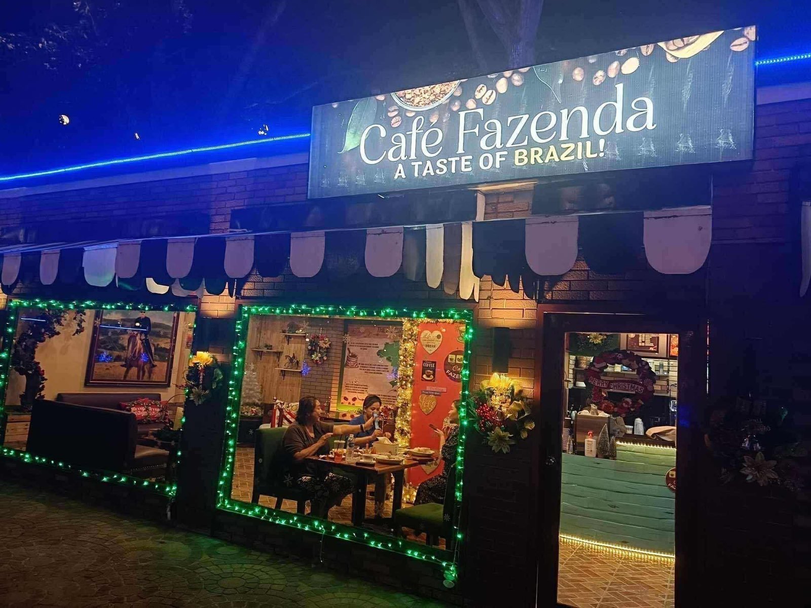 Fazenda Cafe at night.